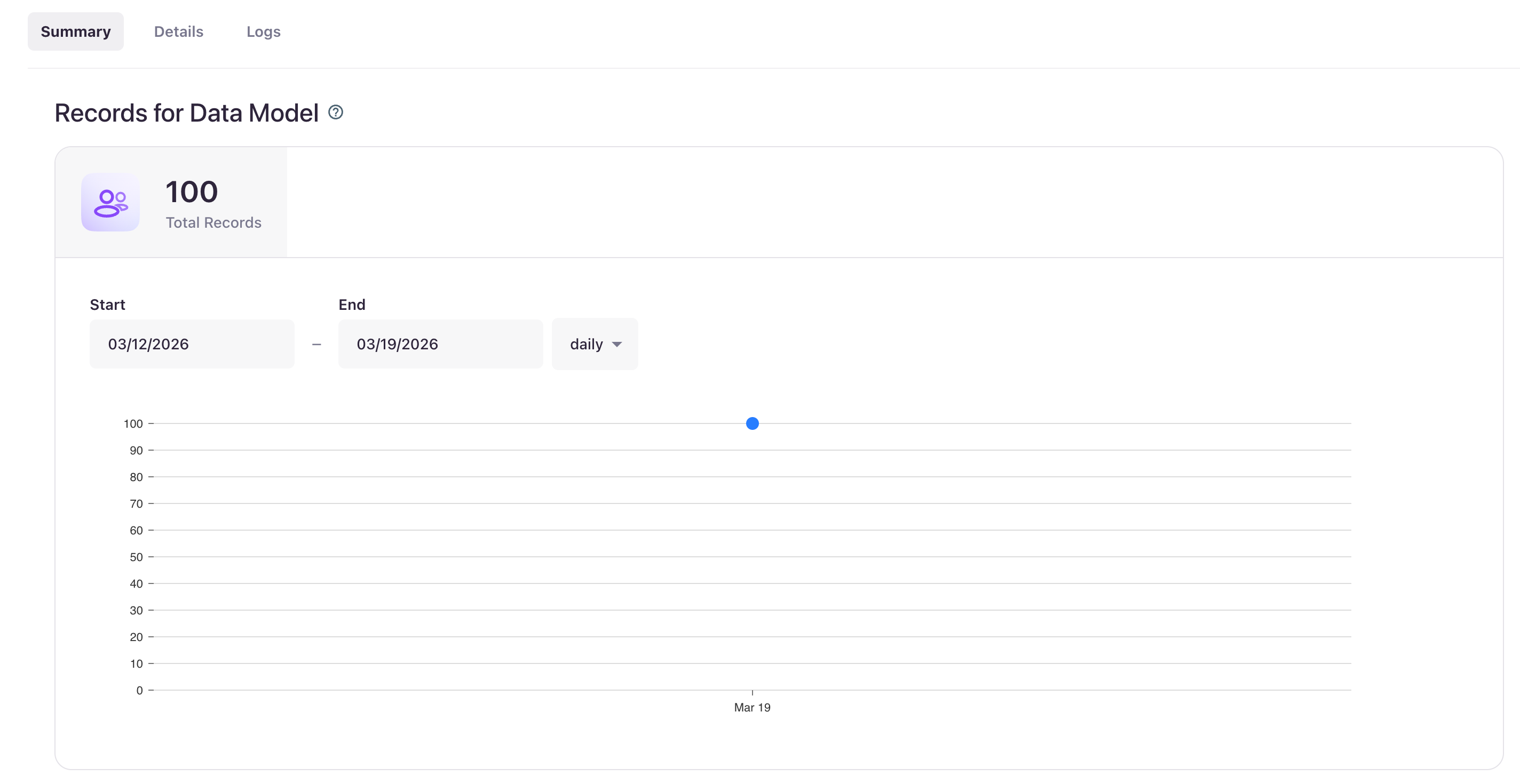 Total Records within the Data Model Summary