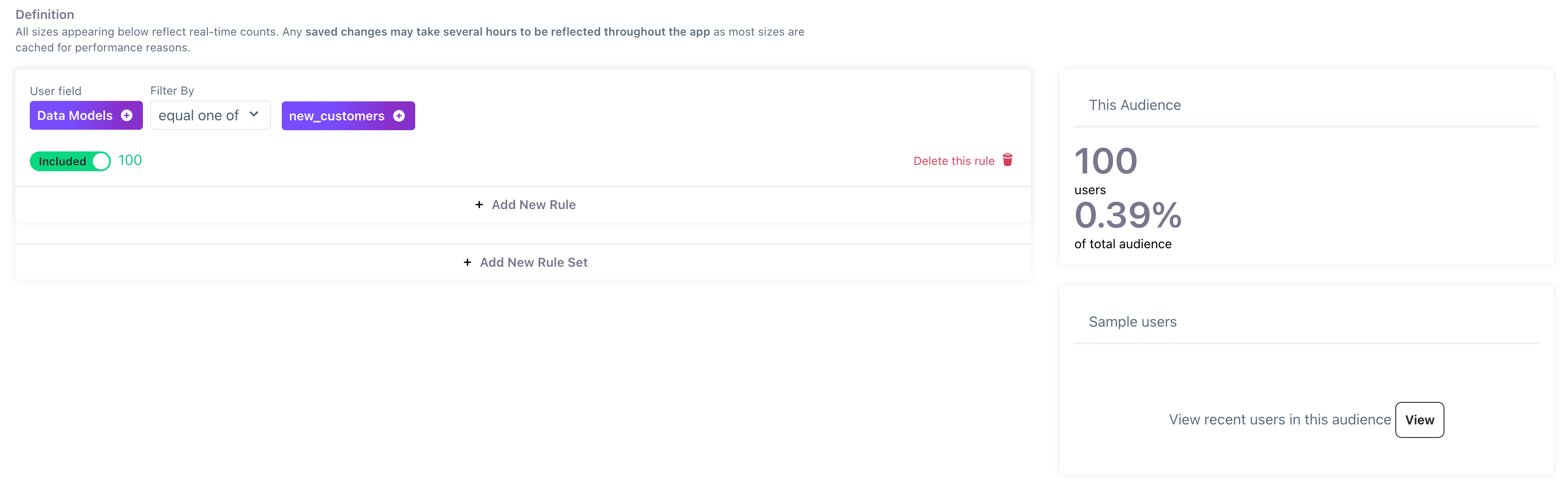 - If the "Create New Profiles" option isn't selected on the Data Model, the count of users in the Audience Builder will only include profiles that already existed in your Lytics accounts
